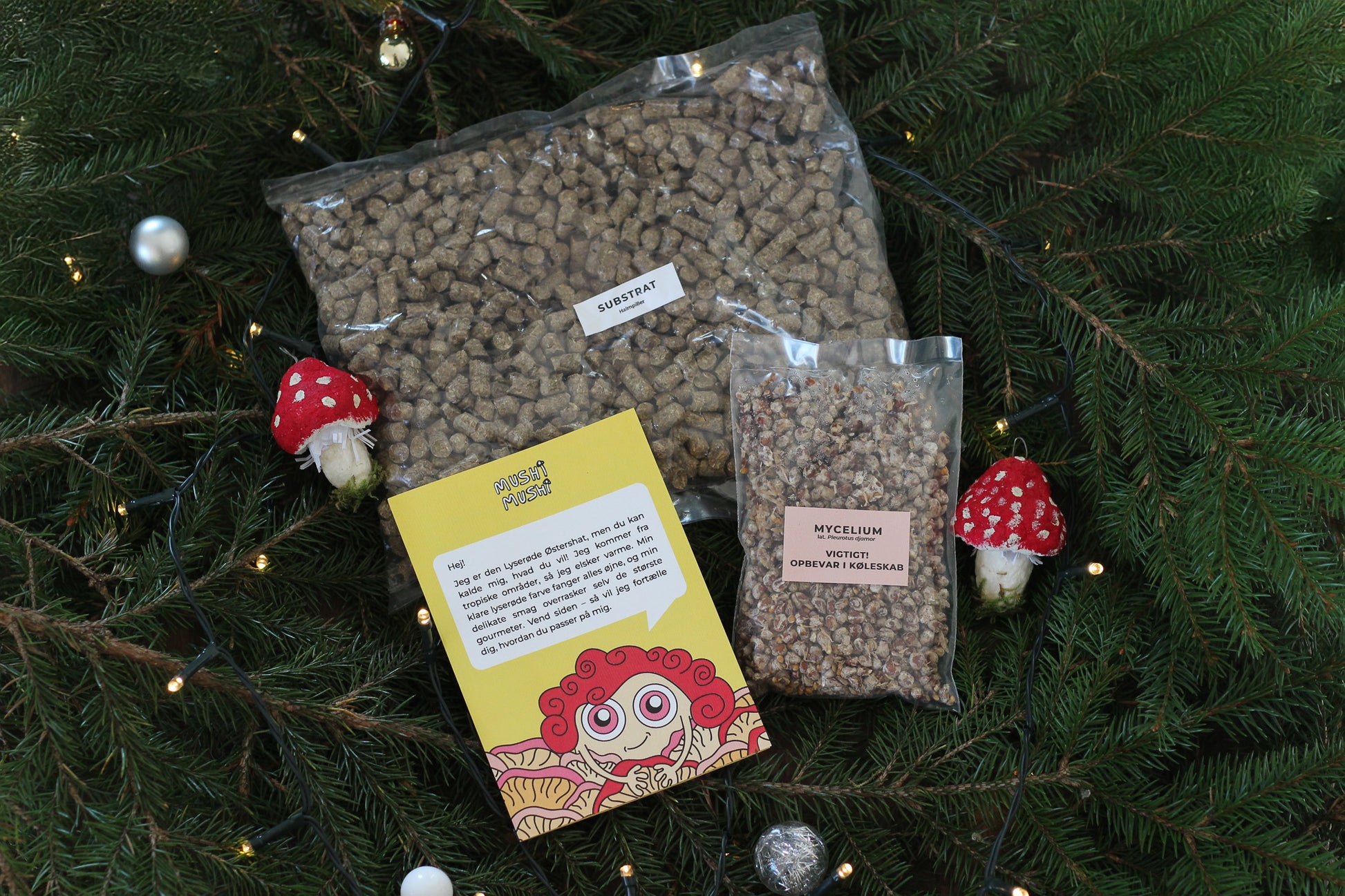 Vi vil gerne gøre denne oplevelse så hyggelig som muligt, så vi inviterer dig til at tænke på dette svampekit som en levende karakter – noget, du kan passe på og endda give et navn!